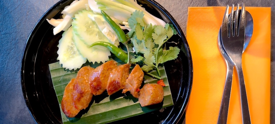 Bei uns im KINKHAO-Restaurant kannst du unsere Thai-Bratwurst im Menu als Vorspreise geniessen.